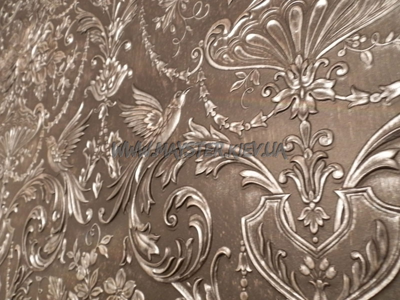 Відео готової роботи з монтажу та декорування лінкрусти. Ефект срібло.
